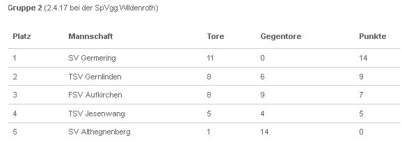 Dort trifft sie am 7. Mai in Mammendorf ab 9:00 Uhr auf den SC Fürstenfeldbruck, den SC Maisach und den 1. SC Gröbenzell. Die beiden erstplazierten Mannschaften dieser Gruppe ziehen in das Kreisfinale ein.